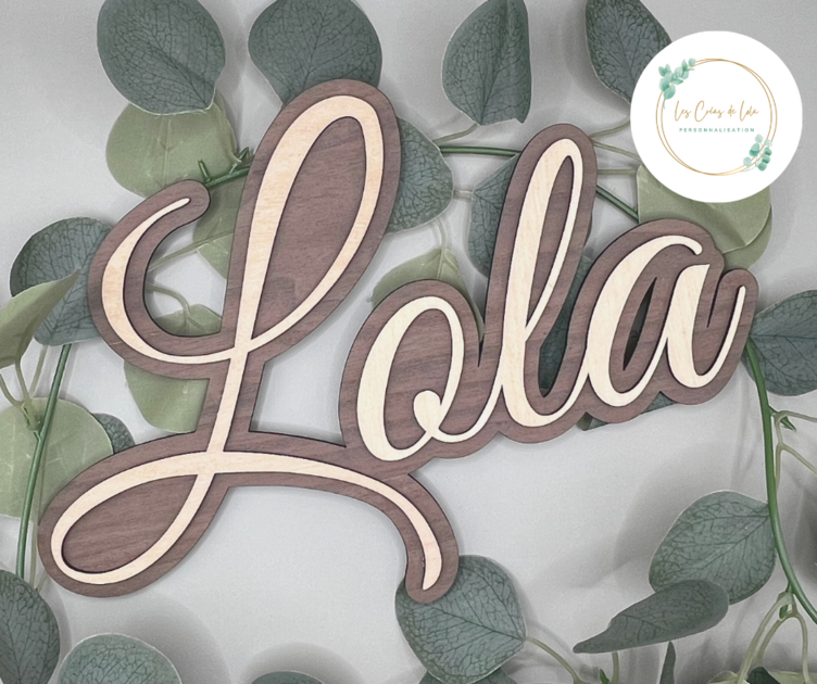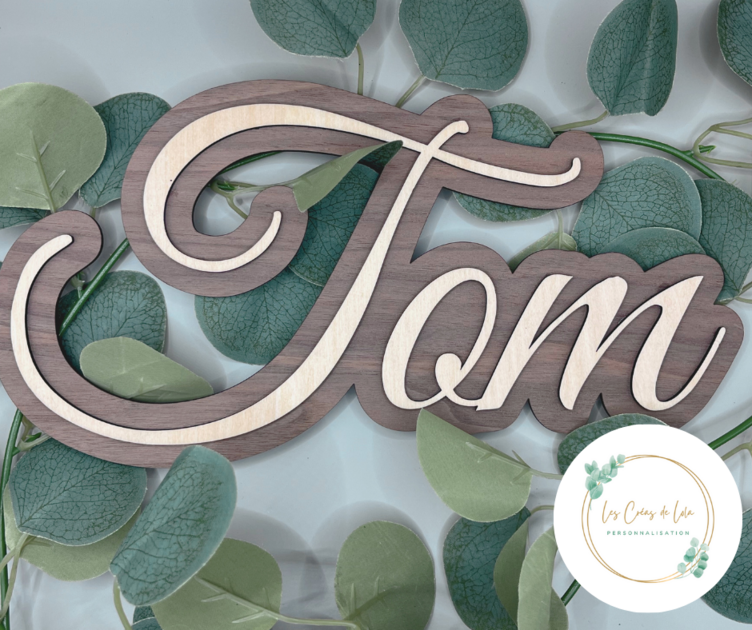 Imaginez un instant votre prénom, soigneusement gravé dans un magnifique morceau de bois clair en tilleul et en noyer. Chaque détail est pris en compte, depuis la taille du prénom, qui varie entre 25 et 30 cm, jusqu'à l'élégante typographie utilisée pour la découpe.